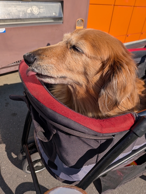 いつもなら、犬太郎の背中にちゃんこが乗っかっていてギュウギュウ詰めに感じていたカート・・・。
