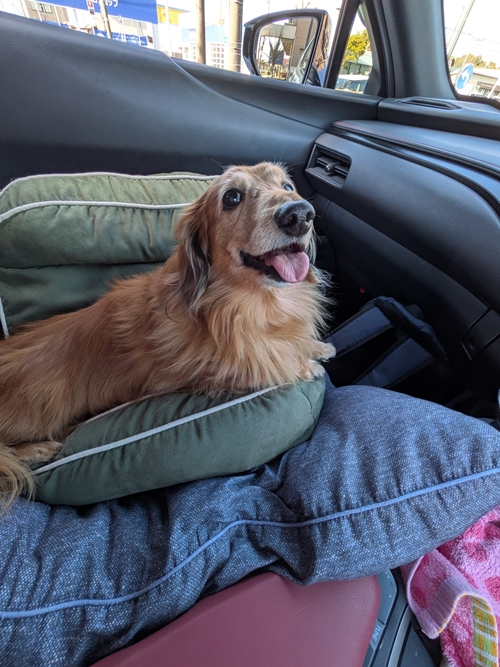 笑顔を見せようと頑張ってくれている犬太郎・・・でも、私にはこの笑顔が作り笑顔だということがわかります🥲