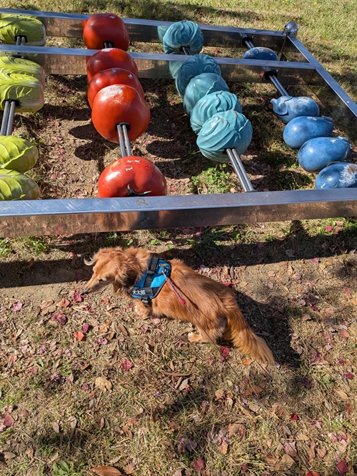 もっと近づいて見てみると・・・お野菜の形をしたそろばんの珠でした😂
