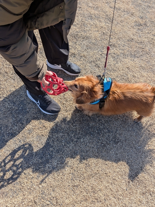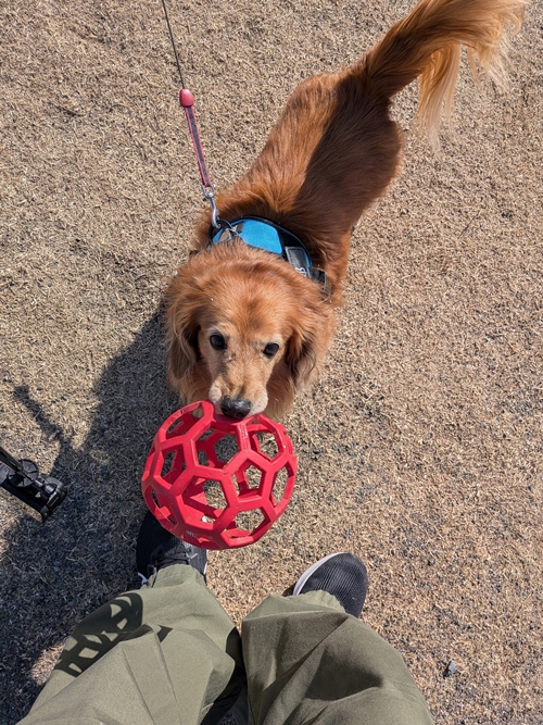 引っ張りっこもしたいし、ボールを投げてもらいたいし。。。で、意外と欲張りさんな犬太郎なのです😅