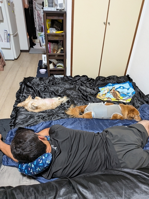 パパ太郎達が寝ているところは新しく買ったMIUティーンのベッドなので、私たちが今晩寝るところに移動してみると・・・こんな感じ。👇