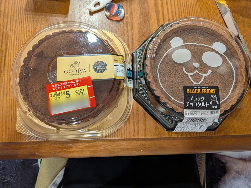 右側はブラックフライデー仕様になっている一般的なチョコタルトでした。