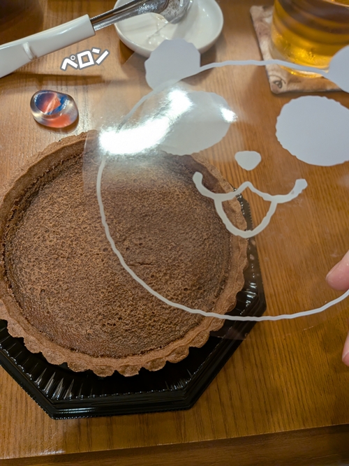分かっていたことですが、、、パンダマークはただのフィルムなので、ペロンと剥がすと本当にただのチョコタルト💦