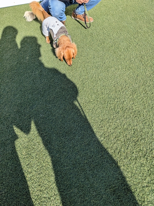 私も運動で歩きたいので、犬太郎を騙し騙し話しかけながらカートで公園まで到着!