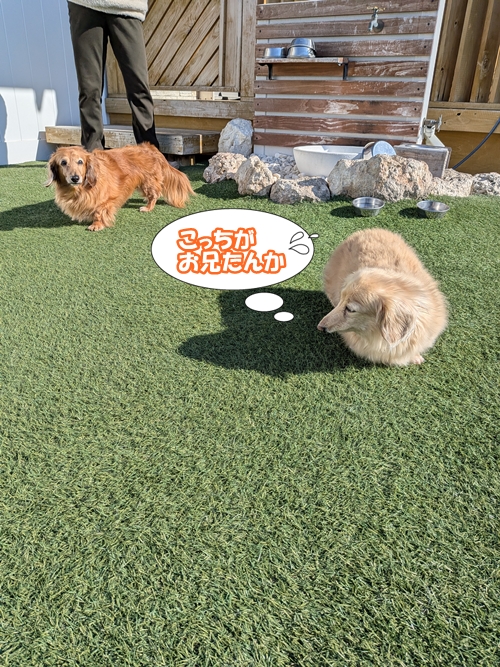 向こうの方にコムギちゃんたちが行っちゃったから、犬太郎とちゃんこも向こうに行ってみよう♪