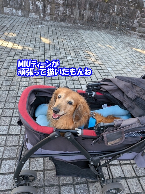 実は、一昨年の年末の伊豆旅行でMIUティーンも一緒に参拝した神社で、『犬の絵馬』が有名な神社なのでここで美大卒のMIUティーンに、その絵馬に犬太郎とちゃんこの似顔絵を描いてもらい奉納しました!