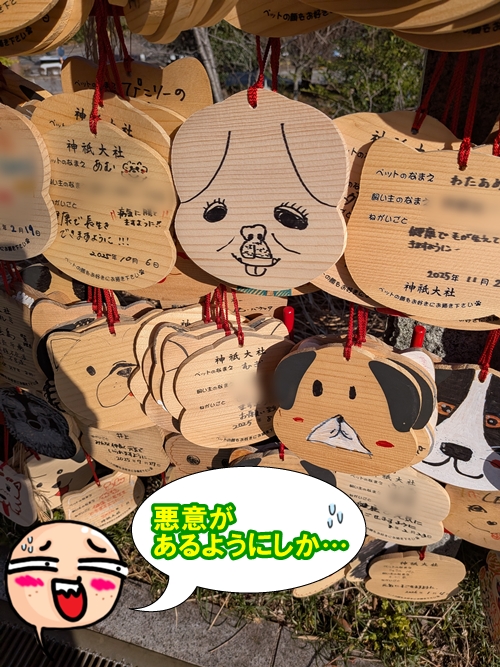 この辺だったはずなのに・・・犬太郎とちゃんこの絵馬ない~~!!😱