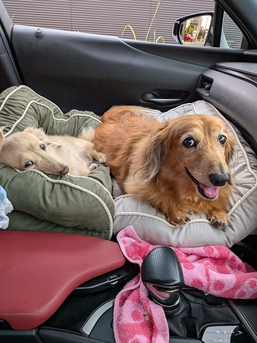 普段はウォーキングで通勤するパパ太郎ですが、天候不順や気分によってはときどき車で会社まで送ってあげるのですが・・・そんな時はもちろん、ワンコたちも一緒に行きます!🤗