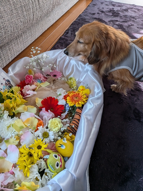 1月11日『ワンワンワン』の日に、ちゃんこが大好きだった自宅で家族全員で無事にお空へ送り出すことができました。