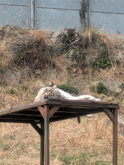 ここから見えるのは二匹のホワイトタイガーちゃんでしたが、二人とも同じ格好で爆睡しちゃってました😅