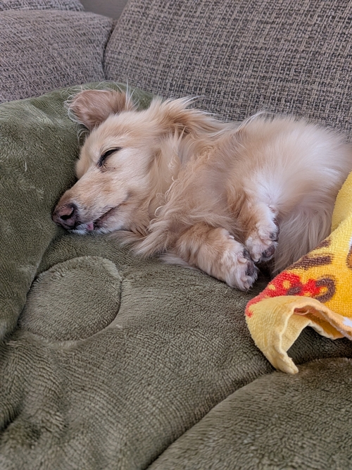 ちゃんこもお腹の調子が万全ではなかったこともあり、お昼寝はスヤスヤと気持ち良さそうでした😌