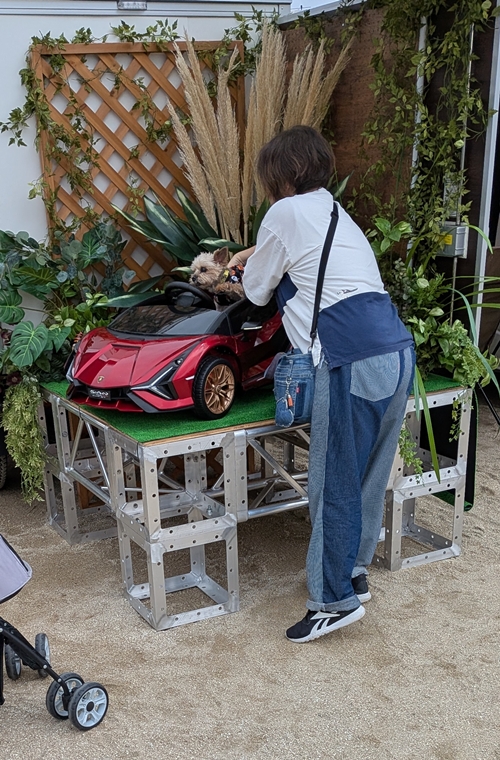 お店巡りは見ごたえが抜群で、昨日でもUPしましたが ワンちゃんが甲冑を試着して撮影できブースや、高級車(フェラーリ?)に乗ってお写真が撮れるブースなんかもありましたよ~!🏎