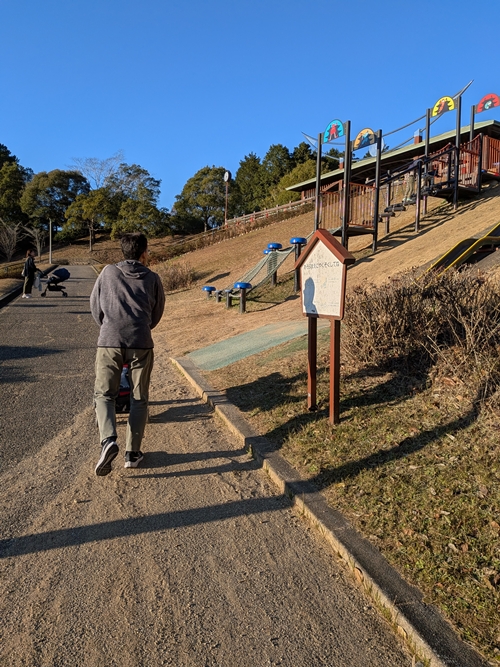 スリリングな遊具で遊ぶチビッ子たちですが、そもそもこんな日が落ちかけている夕方ギリギリでも、まだまだ遊ぶ元気があるんですよね~~?!😅