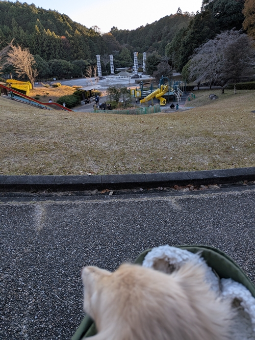 いつもなら斜面を登ったら広い公園をそのまま一周して帰るのですが、日も落ちそうだったし。。。何より寒い!(笑)