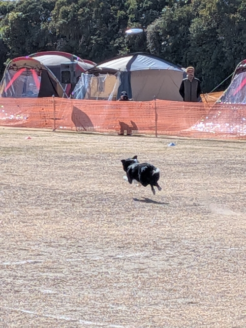 正式な大会名はわからないのですが、フリスビー犬の大会が繰り広げられていた真っ最中でした(笑)🐕
