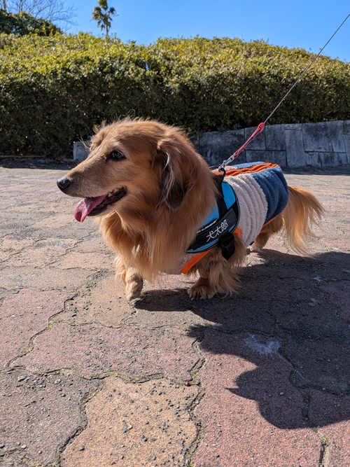 お天気は見ての通りの晴天だったんですが・・・気温が低くて珍しく犬太郎もお洋服を着用🥶