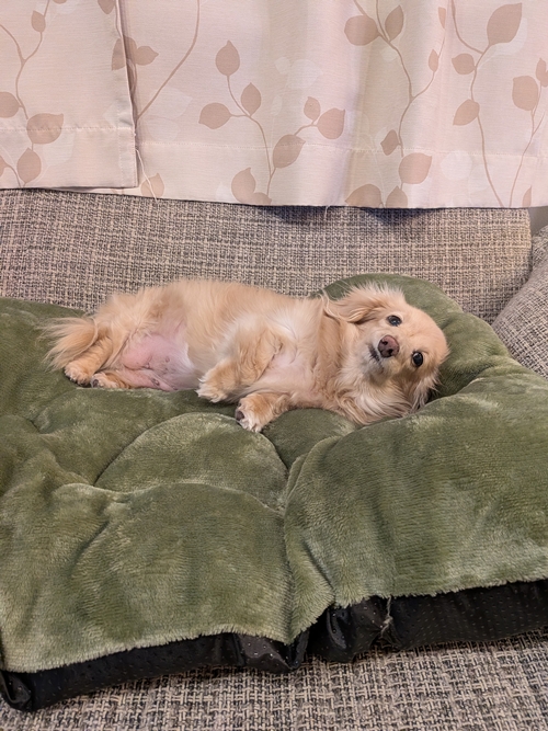 寒くなったので冬用のわんこベッドを引っ張り出してきたというネタでした😅