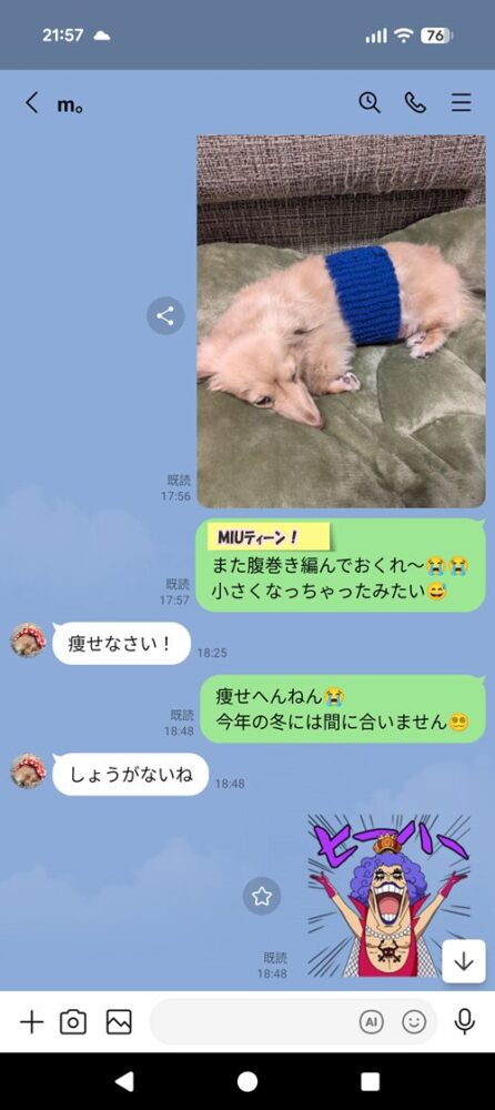 すぐにMIUティーンにLINEで画像を送り、新しい腹巻を新調して欲しいと嘆願しました!w