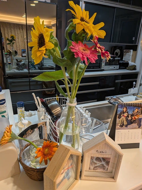という訳で、ひまわりとガーベラを購入して生けてみました🤗
