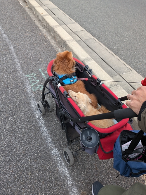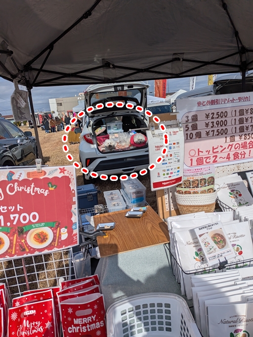 お店の奥では車の中で、お店のマスコットキャラクターになっているであろう愛犬くんたちの姿も見えました🐕
