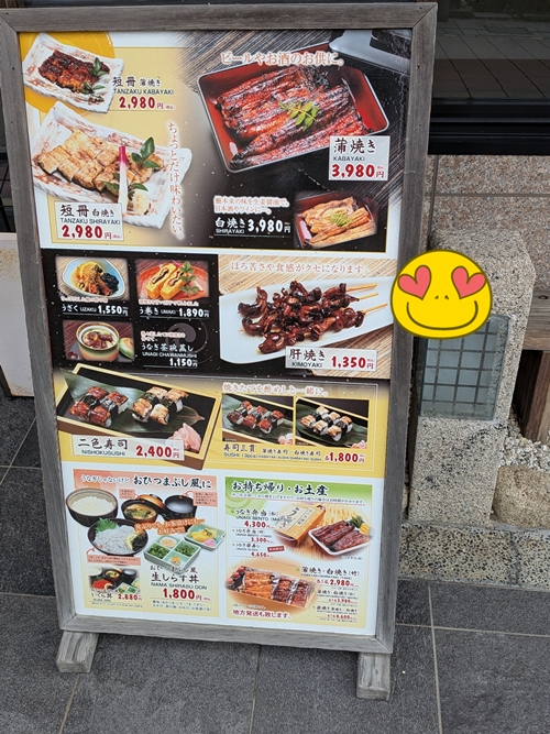 こちらのうなぎ屋さんは玄関口に大きなメニュー表が掲げられており、鰻の香ばしい香りと視覚で食欲をかきたてる作戦のようで。。。私の胃袋はちゃんと鷲掴み状態😍😍