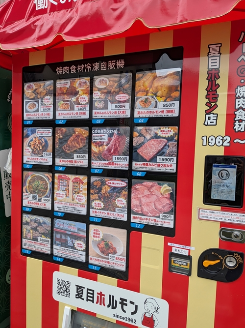 昭和レトロな雰囲気を味わいながらお散歩していると『焼肉』の冷凍食品自販機がありました。