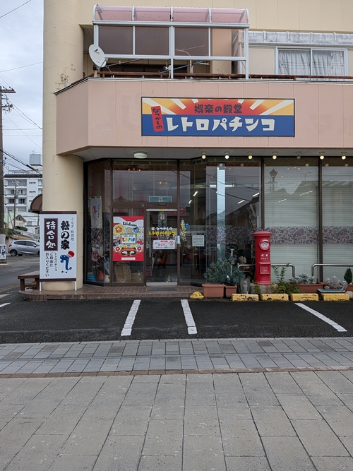 温泉街の先に進んでみると、これまた懐かしい雰囲気の『レトロパチンコ』店!
