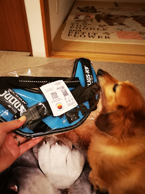 痛がる様子はなかったのですが、患部が当たって歩きにくいだろうなぁっと心配になり、、、ちゃんこも使っている”ユリウスK-9”のハーネスを購入してみました。