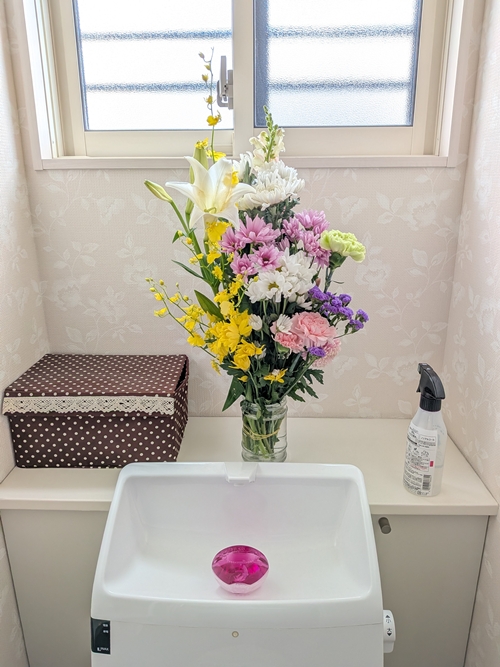 背丈もあったので玄関には置けず・・・トイレに飾ってみましたが、もの凄く豪華なトイレに変身しました🤣🥰